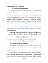 5.1 Recomendaciones para la investigación 5.1.1 Futuros proyectos de investigación Es importante tener presente que las enfermedades crónicas no transmisibles están ganando terreno. En México la diabetes es la segunda causa general de muerte, con una tasa de mortalidad de 70.9 por cada 100 mil habitantes; en Sonora ésta es la tercera causa de muerte, con una tasa de mortalidad superior (109.06) a la nacional (Sistema Nacional de Información en Salud 2009). A pesar de la difusión que se le ha dado a este problema de salud en varios sectores, aún existe población vulnerable que carece de información pertinente y clara que los alerte sobre esta pandemia; por otra, hay quienes no creen necesario hacer conciencia de la magnitud del problema, por lo cual no reparan en los cuidados necesarios para evitar ser un número más en las estadísticas de morbilidad y/o mortalidad de la diabetes. Por lo anterior, consideramos esencial para una nueva aportación a la promoción de la salud, que se realicen estudios sobre la diabetes con un enfoque multidisciplinario de las ciencias sociales e incluso de las ciencias biológicas, que no se limite a la parte biomédica sino que también aluda a la parte social donde aún falta mucho por investigar. 5.1.2 Acotaciones conceptuales y metodológicas Si bien los términos planteados en el tercer capítulo muestran un panorama de lo que consideramos básico para la promoción de la salud, reconocemos que hace falta un estudio más profundo sobre ellos. Del proceso de salud-enfermedad-atención se identifican en ambos programas el trabajo de autocuidado y autoayuda para PA y GAM respectivamente. El primero se presenta de forma individual con el objetivo de que las y los participantes aporten a sus familias 121