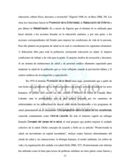educación, cultura física, descanso y recreación” (Sigerist 1946 cit. en Buss 2006, 20). Las otras tres funciones fueron la Prevención de la Enfermedad, la Restauración del Enfermo y por último la Rehabilitación. Es a través de Sigerist que el término PS es utilizado para hacer alusión a las acciones basadas en la educación sanitaria, y por otra parte, a las acciones correspondientes del Estado para mejorar las condiciones de vida de la persona. Para ello planteó un programa de salud en el cual se consideraron los siguientes elementos: 1) Educación libre para toda la población, incluyendo educación en salud; 2) mejores condiciones de trabajo y de vida para la gente; 3) mejores medios de recreación y descanso; 4) un sistema de instituciones de salud y de personal médico altamente capacitado para mantener la salud de la población que se viese reflejado cuando la prevención fallara y 5) centros médicos de investigación y capacitación. En 1974 el término Promoción de la Salud toma auge, permitiendo que a partir de esta fecha sea considerado en los diversos escritos con miras a mejorar la salud de los seres humanos. El primer caso sucede ese año, cuando el Ministro de Salud de Canadá, Marc Lalonde, ante la problemática que su país estaba viviendo por los aumentos de enfermedades en las poblaciones de mayor edad decide incorporarlo a los programas de salud planteándolo en el documento Una perspectiva sobre la salud de los canadienses, conocido comúnmente como Informe Lalonde. En éste el ministro sugirió un enfoque llamado Concepto del campo de la salud, el cual propuso que podría mejorar el cuidado colectivo de la salud. Dicho concepto de acuerdo a Solís en su artículo “Promoviendo la salud, un movimiento en espiral ascendente”, incluye cuatro factores determinantes del estado de salud y sus interacciones: la biología humana, el medio ambiente, los estilos de vida y la organización del cuidado a la salud (Solís 2006, 327). Posteriormente este informe fue utilizado como la base para textos de políticas similares en otros países como Suecia y 17