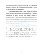 tienen diabetes (Center for Disease Control and Prevention 2009). Estos resultados han ido en aumento, ya que de 1991 a 2004 el porcentaje se incrementó en un 61% y se prevé que éste sea el doble para el año 2050 (Gerberding 2005). En las comunidades latinas la situación es similar. En el año 2002 el Center for Disease Control and Prevention informó que entre las principales causas de muerte de la comunidad latina que radica en los Estados Unidos, destacan las siguientes: 1) Enfermedades cardiacas, 2) cáncer, 3) lesiones no intencionales, 4) derrames cerebrales, 5) diabetes, 6) enfermedad hepática grave y cirrosis, 7) homicidios, 8) enfermedades crónicas del tracto respiratorio inferior, 9) neumonía e influenza y 10) defectos congénitos (Center for Disease Control and Prevention 2009). Para los intereses de la presente investigación nos abocaremos al estado de Arizona, que es uno de los de mayor afluencia latina al igual que Nuevo México, California, Nevada, Colorado y Florida (U.S. Census Bureau 2001). En el año 2008 se estimó que este estado contaba con una población total de 6 500 180 habitantes y de acuerdo al U.S. Census Bureau la proyección poblacional para Arizona irá en aumento (ver cuadro 12). Al igual que en el resto del país los problemas de salud afectarán en todas las edades, lo que obliga a las autoridades diseñar metodologías y programas para enfrentar la situación. 54