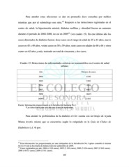 Para atender estas afecciones se dan en promedio doce consultas por médico 18 mientras que por el odontólogo son siete. Respecto a las detecciones registradas en el centro de salud, la hipertensión arterial, diabetes mellitus y obesidad fueron en aumento 19 durante el período de 2004-2008, no así en 2009 (ver cuadro 15). En este último año los casos detectados de diabetes fueron: doce casos en el rango de edad de 25 a 44 años, nueve casos en 45 a 49 años, veinte casos en 50 a 59 años; siete casos en edades de 60 a 64 y otros cuatro en 65 años y más, teniendo un total de cincuenta y dos casos. Cuadro 15. Detecciones de enfermedades crónicas no transmisibles en el centro de salud urbano Año Número de casos 2004 4120 2005 5202 2006 5634 2007 8942 2008 14615 2009* 5101 Fuente: Información proporcionada en la Jurisdicción Sanitaria No.1. *Las detecciones para este año son al mes de septiembre. Para atender la problemática de la diabetes el CSU cuenta con un Grupo de Ayuda Mutua (GAM), mismo que se caracteriza según lo estipulado en la Guía de Clubes de Diabéticos (s.f. 4) por: 18 Esta información fue proporcionada por una trabajadora de la Jurisdicción No.1 quien consultó el sistema SIS-SUAVE de la Secretaría de Salud al mes de septiembre de 2009. 19 Casos registrados por año: 2004 (4 120 casos); 2005 (5 202 casos); 2006 (5 634 casos); 2007 (8 942 casos); 2008 (14 615 casos); 2009 (5 101 casos). 89