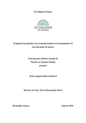 El Colegio de Sonora El papel de las patentes en la economía basada en el conocimiento. El caso del estado de Sonora. Tesis que para obtener el grado de Maestro en Ciencias Sociales presenta Pedro Augusto Sabori Sandoval Director de Tesis: Álvaro Bracamonte Sierra Hermosillo, Sonora Junio de 2010
