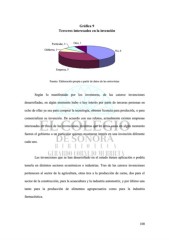 Gráfica 9 Terceros interesados en la invención Particular, 1 Otro, 1 Gobierno, 1 No, 6 Empresa, 5 Fuente: Elaboración propia a partir de datos de las entrevistas Según lo manifestado por los inventores, de las catorce invenciones desarrolladas, en algún momento hubo o hay interés por parte de terceras personas en ocho de ellas ya sea para comprar la tecnología, obtener licencia para producirla, o para comercializar su invención. De acuerdo con sus relatos, actualmente existen empresas interesadas en cinco de las invenciones, mientras que en otros casos en algún momento fueron el gobierno o un particular quienes mostraron interés en una invención diferente cada uno. Las invenciones que se han desarrollado en el estado tienen aplicación o podría tenerla en distintos sectores económicos o industrias. Tres de las catorce invenciones pertenecen al sector de la agricultura, otras tres a la producción de carne, dos para el sector de la construcción, para la acuacultura y la industria automotriz, y por último una tanto para la producción de alimentos agropecuarios como para la industria farmacéutica. 100
