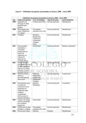 Anexo 5 – Solicitudes de patentes presentadas en Sonora, 2000 – enero 2009 Solicitudes de patentes presentadas en Sonora, 2000 – enero 2009 Año Título de la patente Área Tecnológica Tipo de Inventor Sector/Industria 2000 Dispositivo de Construcciones fijas Inventor particular Manufacturas descarga de doble propósito para inodoro 2000 Miccionador para Necesidades Inventor particular Manufacturas orina y fluidos por corrientes de la vida vía vaginal 2001 Turbigrav Mecánica, Inventor particular Manufacturas Iluminación, Calefacción, Armamento, Voladura Física 2001 Desconectador Electricidad Inventor particular Industria Automotriz automático y conectador temporizado de bancos de capacitores en motores de inducción de corriente alterna 2001 Paneles húmedos Física Inventor particular Construcción para aparatos de aire de tipo evaporativo para uso en climas calientes con alta humedad relativa 2001 Material aislante Mecánica, Inventor particular Construcción térmico y Iluminación, procedimiento de Calefacción, fabricación Armamento, Voladura 2002 Procedimiento para Química, Inventor particular Acuacultura el control de Metalurgia variaciones de los parámetros de calidad del agua, mediante comprimidos efervescentes en sistemas biológicos 2002 Colector del campo Electricidad Inventor particular Manufacturas eléctrico producido por corrientes capacitivas 2002 Gasificación de jugo Necesidades Inventor particular Manufacturas de frutas o verduras corrientes de la vida 2002 Proceso que mejora Química, Empresa Manufacturas 123