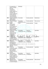 la recuperación, el Metalurgia grado y la cinética del cobre, reduciendo el consumo de los medios metálicos de molienda y del reactivo modificador del PH durante la concentración del cobre por flotación 2003 Soporte experimental Electricidad Inventor particular Manufacturas múltiple para la física mecánica 2004 Proceso de maquila Necesidades Inventor particular Otros servicios de uñas corrientes de la vida 2004 Equipo Física Inventor particular Energía desconectador- conectador de servicio eléctrico en baja tensión con medición de energía eléctrica incluida. 2004 Producción y uso de Necesidades Centro de Agricultura hidrolizados corrientes de la vida investigación proteicos de soya enriquecidos con aminoácidos ramificados 2005 Camarón con Necesidades Centro de Acuacultura contenido bajo de corrientes de la vida investigación colesterol y proceso para su obtención 2005 Método de Necesidades Centro de Agricultura preparación de corrientes de la vida investigación microcápsulas de astaxantina en quitosano y producto obtenido 2005 Proceso de Necesidades Inventor particular Agricultura recolección y segado corrientes de la vida parcial repetitivo para cosecha de productos agrícolas en fresco 2005 Método para la Necesidades Centro de Agricultura obtención de goma corrientes de la vida investigación de maíz a partir del líquido residual de la nixtamalización del grano de maíz 2006 Dispositivo para Necesidades Inventor particular Otros servicios biberones que evita corrientes de la vida el extravío del tapón 124