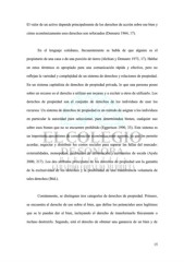 El valor de un activo depende principalmente de los derechos de acción sobre ese bien y cómo económicamente esos derechos son reforzados (Demsetz 1964, 17). En el lenguaje cotidiano, frecuentemente se habla de que alguien es el propietario de una casa o de una porción de tierra (Alchian y Demsetz 1973, 17). Hablar en estos términos es apropiado para una comunicación rápida y efectiva, pero no reflejan la variedad y complejidad de un sistema de derechos y relaciones de propiedad. En un sistema capitalista de derechos de propiedad privada, lo que una persona posee sobre un recurso es el derecho a utilizar ese recurso y a excluir a otros de utilizarlo. Los derechos de propiedad son el conjunto de derechos de los individuos de usar los recursos. Un sistema de derechos de propiedad es un método de asignar a los individuos en particular la autoridad para seleccionar, para determinados bienes, cualquier uso sobre esos bienes que no se encuentre prohibido (Eggertson 1990, 33). Este sistema es un importante mecanismo de coordinación económica entre agentes, ya que les permite acordar, negociar y distribuir los costos sociales para superar las fallas del mercado: externalidades, monopolios, problemas de información y economías de escala (Ayala 2000, 217). Los dos atributos principales de los derechos de propiedad son la garantía de la exclusividad de los derechos y la posibilidad de una transferencia voluntaria de tales derechos (Ibíd.). Comúnmente, se distinguen tres categorías de derechos de propiedad. Primero, se encuentra el derecho de uso sobre el bien, que define los potenciales usos legítimos que se le pueden dar al bien, incluyendo el derecho de transformarlo físicamente o incluso destruirlo. Segundo, está el derecho de obtener una ganancia de un bien y de 15