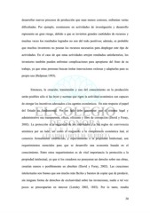 desarrollar nuevos procesos de producción que sean menos costosos, enfrentan varias dificultades. Por ejemplo, aventurarse en actividades de investigación y desarrollo representa un gran riesgo, debido a que se invierten grandes cantidades de recursos y muchas veces los resultados logrados no son del todo positivos; además, es probable que muchos inventores no posean los recursos necesarios para desplegar este tipo de actividades. En el caso de que estas actividades arrojen resultados satisfactorios, los inventores también pueden enfrentar complicaciones para apropiarse del fruto de su trabajo, ya que otras personas buscan imitar innovaciones exitosas y adaptarlas para su propio uso (Helpman 1993). Entonces, la creación, transmisión y uso del conocimiento en la producción serán posibles sólo si las leyes y normas que rigen la actividad económica son capaces de otorgar los incentivos adecuados a los agentes económicos. En este respecto el papel del Estado es fundamental. Por un lado debe garantizar que el sistema legal y administrativo sea transparente, eficaz, eficiente y libre de corrupción (David y Foray, 2002). La protección a la seguridad de los individuos y a las reglas de convivencia armónica por un lado, así como el resguardo a la competencia económica leal, al comercio formalmente establecido, y especialmente a la propiedad intelectual, son requerimientos esenciales para que se desarrolle una economía basada en el conocimiento. Entre estos requerimientos es de vital importancia la protección a la propiedad intelectual, ya que si los creadores no poseyeran un derecho sobre sus obras, crearían menos o posiblemente en absoluto (David y Foray, 2002). Las creaciones intelectuales son bienes que son mucho más fáciles y baratos de copiar que de producir, sin ninguna forma de derechos de exclusividad sobre las invenciones, nadie o tal vez pocos se preocuparían en innovar (Lemley 2002, 1892). Por lo tanto, resulta 30