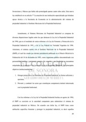 Invenciones y Marcas que había sido promulgada apenas cuatro años atrás. Esta nueva ley estableció en su artículo 7° la creación de una institución especializada que brindara apoyo técnico a la Secretaría de Economía en la administración del sistema de propiedad industrial: el Instituto Mexicano de la Propiedad Intelectual. Actualmente, el Sistema Mexicano de Propiedad Industrial se compone de diversas disposiciones legales entre las que destacan la Ley de la Propiedad Industrial de 1994, que es el resultado de varias reformas a la Ley de Fomento y Protección de la Propiedad Industrial de 1991, y de la Ley Federal de Variedad Vegetales de 1996. Asimismo, el sistema cuenta con el Instituto Mexicano de la Propiedad Industrial (IMPI), el cual fue creado por decreto presidencial publicado en el Diario Oficial de la Federación del 10 de diciembre de 1993, como organismo público descentralizado con personalidad jurídica y patrimonio propios. Su creación y sus facultades se encuentran estipuladas en el artículo 6º de la actual Ley de la Propiedad Industrial. Sus principales objetivos institucionales son: 1. Otorgar protección a los Derechos de Propiedad Industrial, en forma suficiente y oportuna. 2. Prevenir y combatir los actos que constituyan competencia desleal relacionada con la propiedad intelectual. Con las reformas a la Ley de la Propiedad Industrial hechas en agosto de 1994, el IMPI se convierte en la autoridad competente para administrar el sistema de propiedad industrial en México. De acuerdo con dicha ley, el IMPI tiene como atribución específica fomentar y proteger la propiedad industrial, es decir aquellos 49