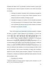 de patentes para algunos casos. Las solicitudes se clasifican tomando en cuenta el país de origen del inventor o titular de la patente, de acuerdo con este criterio, hay dos tipos de solicitudes: 1. Solicitudes de residentes o nacionales. Son las solicitudes que presentan los residentes de un país en esa misma nación. Pueden considerarse como un indicador de producción científica y tecnológica nacional. 2. Solicitudes de extranjeros o no residentes. Son las solicitudes que presentan en un país personas que no son residentes del mismo. Pueden considerarse como un indicador del interés que tiene una nación extranjera por introducir tecnología en otros mercados nacionales. Tanto a nivel nacional como internacional, al solicitar una patente o al registrar una marca o un dibujo o modelo industrial hay que determinar si se trata de una creación nueva o si esa creación pertenece o ha sido reivindicada por otra persona. Para ello es necesario examinar cantidades abultadas de información. La Clasificación Internacional de Patentes (CIP), establecida por el Arreglo de Estrasburgo de 1971, es un sistema jerárquico para clasificar y buscar documentos de las patentes y modelos de utilidad, con arreglo a los distintos sectores de la tecnología a los que pertenecen. Los niveles de clasificación están ordenados en una estructura jerárquica de árbol; el nivel más alto corresponde a ocho secciones relacionadas con amplias áreas tecnológicas, 23 seguido de las clases, subclases, grupos principales y subgrupos . Para efectos de esta investigación se manejará una clasificación simplificada basada solamente en las ocho áreas tecnológicas, a saber: 1. Necesidades de la vida diaria. 23 Organización Mundial de la Propiedad Intelectual. Preguntas generales relacionadas con la CIP http://www.wipo.int/classifications/ipc/en/faq/#G1 51