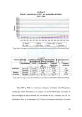 Gráfica 10 Patentes otorgadas por el IMPI por nacionalidad del titular, 1993 - 2008 6000 5600 5200 4800 4400 4000 3600 Patentes 3200 2800 2400 2000 1600 1200 800 400 0 1993 1994 1995 1996 1997 1998 1999 2000 2001 2002 2003 2004 2005 2006 2007 2008 México Alemania Estados Unidos Francia Japón Reino Unido Suiza Otros países Fuente: http://www.impi.gob.mx/work/sites/IMPI/resources/LocalContent/820/4/IMPIenCIFRASenedic2008.pdf Cuadro 1 Patentes solicitadas y concedidas en México por área tecnológica de mayor demanda y nacionalidad del inventor, 1997-2006 Nacionalidad Total Artículos de Técnicas Química y uso y industriales metalurgia consumo diversas Solicitudes Mexicano 5, 010 1,231 971 738 Extranjero 123,550 39,161 21,932 27,806 Patentes Mexicano 2,585 566 569 549 otorgadas Extranjero 57, 953 12, 702 11,255 16,482 Fuente: http://www.impi.gob.mx/work/sites/IMPI/resources/LocalContent/820/4/IMPIenCIFRASenedic2008.pdf Entre 1997 y 2006, los inventores extranjeros solicitaron 123, 550 patentes, cantidad que resulta abrumadora si se compara con las 5,010 hechas por nacionales. El área tecnológica de mayor demanda son los artículos de uso y consumo, con 39, 161 solicitudes a favor de los extranjeros y 1,231 para los inventores mexicanos. En cuanto 60