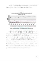 Enseguida se analizará la evolución del patentamiento en Sonora mediante un análisis comparativo con el resto de las entidades de la república mexicana. Gráfica 12 Patentes solicitadas en México por entidad de residencia del inventor, 1996 - 2008 240 220 200 180 160 Patentes 120 140 100 80 60 40 20 0 1996 1997 1998 1999 2000 2001 2002 2003 2004 2005 2006 2007 2008 Distrito Federal Estado de México Jalisco Nuevo León Sonora Fuente: Consejo Administrador de la Propiedad Industrial e Intelectual CAPII En los últimos trece años, en México se solicitaron un total de 6,656 patentes. La entidad que más patentes solicitó fue el Distrito Federal con 2,361, el 35.47 % del total de solicitudes, seguida de Nuevo León con 750, el 11.26 %. Por su parte, el estado de Sonora presentó un total de 73, apenas el 1.09 % del total nacional. El año en que registró más solicitudes fue en el 2007 con 13, el 2.2 % de las 575 contabilizadas en ese año, y ocupó la posición número nueve con respecto al resto de las entidades federativas. El año en que el estado presentó el menor número de solicitudes fue en el 2003 con apenas una, es decir el 0.2 % del total de 468 presentadas en México, por lo que ocupó la posición 16 en comparación con el resto de los estados. 70