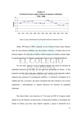 Gráfica 13 Posición de Sonora según el número de patentes solicitadas, 1996 - 2008 20 16 16 14 14 15 14 Posición 8 12 12 12 11 12 9 9 11 12 4 0 1996 1997 1998 1999 2000 2001 2002 2003 2004 2005 2006 2007 2008 Fuente: Consejo Administrador de la Propiedad Industrial e Intelectual CAPII Desde 1996 hasta el 2008, solamente en dos ocasiones Sonora logró ubicarse entre las diez primeras entidades que más patentes solicitan, y siempre lejos de los primeros lugares. En estos años el Distrito Federal siempre ha ocupado el primer lugar, la segunda posición se la disputan normalmente Nuevo León y el Estado de México. Por otro lado, como se vio en el capítulo anterior, son vitales los derechos de propiedad intelectual en una EBC. En ese marco las autoridades de Sonora se han propuesto transitar hacia esta nueva dinámica, por lo tanto, se ha requerido realizar esfuerzos para promover la investigación científica y el desarrollo tecnológico de la entidad; para ello se necesita una mayor vinculación del sector educativo con el sector empresarial y adicionalmente se requiere promover los derechos de propiedad intelectual. Para hacer frente a esta situación, el 17 de mayo de 2007 el Congreso estatal aprobó la Ley de Fomento a la Innovación y al Desarrollo Científico y Tecnológico del Estado de Sonora, que tiene como objetivo impulsar y apoyar el desarrollo de la 71