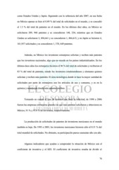 como Estados Unidos y Japón. Siguiendo con la referencia del año 2007, en esa fecha en México apenas se hizo el 0.89 % del total de solicitudes en el mundo, y se concedió el 1.3 % del total de patentes en el mundo. En los últimos diez años, en México se solicitaron 289, 946 patentes y se concedieron 148, 224, mientras que en Estados Unidos se solicitaron 3, 894,641 y se concedieron 1, 804,415, y en Japón se hicieron 4, 161,957 solicitudes y se concedieron 1, 370, 649 patentes. Además, en México los inventores extranjeros solicitan y reciben más patentes que los inventores nacionales, algo que no sucede en los países industrializados. En los últimos doce años los extranjeros hicieron el 96 % del total de solicitudes y recibieron el 83 % del total de patentes, siendo los inventores estadounidenses y alemanes quienes solicitan y reciben más patentes. El área tecnológica donde se hace la mayor cantidad de solicitudes por parte de extranjeros son los artículos de uso y consumo, y es en la química y metalurgia donde más patentes reciben. Tomando en cuenta el tipo de inventor que hace la solicitud, de 1998 a 2006 fueron las empresas extranjeras grandes las que más patentes solicitaron y obtuvieron en México, 91 % y 93.6 % de los totales, respectivamente. La producción de solicitudes de patentes de inventores mexicanos en el mundo también es baja. De 1995 a 2003, los inventores mexicanos hicieron sólo el 0.31 % del total mundial de solicitudes. No obstante, su participación parece aumentar año con año. Algunos indicadores que ayudan a comprender la situación de México son el coeficiente de inventiva y el KEI. El coeficiente de inventiva resulta de dividir el 76
