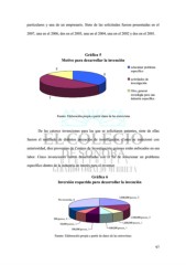 particulares y una de un empresario. Siete de las solicitudes fueron presentadas en el 2007, una en el 2006, dos en el 2005, una en el 2004, una en el 2002 y dos en el 2001. Gráfica 5 Motivo para desarrollar la invención solucionar problema 2 específico 5 actividades de investigación Otro, generar tecnología para una 7 industria específica Fuente: Elaboración propia a partir datos de las entrevistas De las catorce invenciones para las que se solicitaron patentes, siete de ellas fueron el resultado de distintos proyectos de investigación. Como se mencionó con anterioridad, diez provenían de Centros de Investigación quienes están enfocados en esa labor. Cinco invenciones fueron desarrolladas con el fin de solucionar un problema específico dentro de la industria de interés para el inventor. Gráfica 6 Inversión requerida para desarrollar la invención 5,800,000 pesos, 3 No recuerda, 4 1,300,000 pesos, 2 500 pesos, 1 38,000 pesos, 1 1,000,000 pesos, 1 500,000 pesos, 1 600,000 pesos, 1 Fuente: Elaboración propia a partir de datos de las entrevistas 97