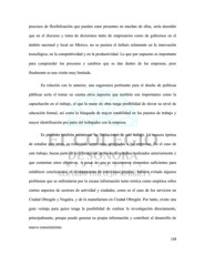 procesos de flexibilización que pueden estar presentes en muchas de ellas, sería deseable que en el discurso y toma de decisiones tanto de empresarios como de gobiernos en el ámbito nacional y local en México, no se pusiera el énfasis solamente en la innovación tecnológica, en la competitividad y en la productividad. Lo que por supuesto es importante para comprender los procesos y cambios que se dan dentro de las empresas, pero finalmente es una visión muy limitada. En relación con lo anterior, una sugerencia pertinente para el diseño de políticas públicas sería el tomar en cuenta otros aspectos que también son importantes como la capacitación en el trabajo, el que la mano de obra tenga posibilidad de elevar su nivel de educación formal, así como la búsqueda de mayor estabilidad en los puestos de trabajo y mayor identificación por parte del trabajador con la empresa. Es prudente también mencionar las limitaciones de este trabajo. La manera óptima de estudiar este tema, es realizando entrevistas apropiadas a las empresas. En el caso de este trabajo, buena parte de la información proviene de estudios realizados anteriormente y que contenían otros objetivos. A pesar de que se encontraron elementos suficientes para establecer conclusiones, el levantamiento de entrevistas propias, hubiera evitado algunos problemas que se enfrentaron por la escasa información tanto teórica como empírica sobre ciertos aspectos de sectores de actividad y ciudades, como es el caso de los servicios en Ciudad Obregón y Nogales, y de la manufactura en Ciudad Obregón. Por tanto, existe una gran ventaja para quien tenga la posibilidad de realizar la investigación directamente, principalmente, porque puede generar su propia información y contribuir al desarrollo de nuevo conocimiento. 118