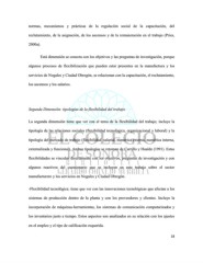 normas, mecanismos y prácticas de la regulación social de la capacitación, del reclutamiento, de la asignación, de los ascensos y de la remuneración en el trabajo (Pries, 2000a). Está dimensión se conecta con los objetivos y las preguntas de investigación, porque algunos procesos de flexibilización que pueden estar presentes en la manufactura y los servicios de Nogales y Ciudad Obregón, se relacionan con la capacitación, el reclutamiento, los ascensos y los salarios. Segunda Dimensión: tipologías de la flexibilidad del trabajo. La segunda dimensión tiene que ver con el tema de la flexibilidad del trabajo; incluye la tipología de las relaciones sociales (flexibilidad tecnológica, organizacional y laboral) y la tipología del mercado de trabajo (flexibilidad salarial, numérica externa, numérica interna, externalizada y funcional). Ambas tipologías se retoman de Carrillo y Hualde (1991). Estas flexibilidades se vinculan directamente con los objetivos, preguntas de investigación y con algunos reactivos del cuestionario que se incluyen en este trabajo sobre el sector manufacturero y los servicios en Nogales y Ciudad Obregón. -Flexibilidad tecnológica: tiene que ver con las innovaciones tecnológicas que afectan a los sistemas de producción dentro de la planta y con los proveedores y clientes. Incluye la incorporación de máquinas-herramientas, los sistemas de comunicación computarizados y los inventarios justo a tiempo. Estos aspectos son analizados en su relación con los ajustes en el empleo y el tipo de calificación requerida. 18