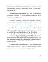 identificar, comparar y analizar información contenida en los dos trabajos de tesis que se retoman y de algunas variables de la Encuesta Empleo y Calidad de Vida en Nogales y Ciudad Obregón, 2008. Empezando por la flexibilidad tecnológica que se refiere a las innovaciones en tecnología dentro de la empresa, y se utiliza en este trabajo con el objetivo de saber qué tanto se da o no este tipo de innovaciones. La flexibilidad organizacional se relaciona con los cambios en los sistemas de la organización de la producción dentro de la empresa, y se utiliza en este trabajo con la finalidad de saber qué tanto se dan o no estos cambios en la organización del trabajo. La flexibilidad laboral que se refiere a las modificaciones laborales orientadas a la recuperación de los espacios de negociación por parte de los empresarios, y se utiliza en este trabajo con el objetivo de saber qué tanto se dan o no estas modificaciones. La flexibilidad salarial se relaciona con los sistemas de pago por productividad y salarios por conocimiento basados en la polivalencia de los trabajadores, y se utiliza en este trabajo con la finalidad de saber qué tanto se dan o no este tipo de pagos que son extras a lo que sería el salario base. La flexibilidad numérica externa se relaciona con el número de empleados que son ajustados según las necesidades de la empresa, y se utiliza en este trabajo con el fin de saber qué tanto se dan o no estos ajustes en los contratos de los trabajadores. 24