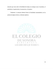 discusión que existe sobre la flexibilidad del trabajo con enfoques como el neoclásico, el posfordista, el regulacionista, el neomarxista y el de género. Finalmente, se enumeran distintas formas de flexibilidad contrastándolas con las posturas de algunos teóricos y referentes empíricos. 30