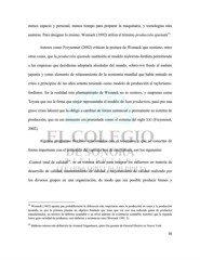 menos espacio y personal, menos tiempo para preparar la maquinaria, y tecnologías más 13 austeras. Para designar lo mismo, Womack (1992) utiliza el término producción ajustada . Autores como Freysennet (2002) critican la postura de Womack que sostiene, entre otras cosas, que la producción ajustada sustituiría al modelo taylorista-fordista permitiendo a las empresas que decidieran adoptarla alrededor del mundo, sobrevivir frente al embate japonés y como elemento de relanzamiento de la economía mundial que había entrado en crisis a principios de los años setenta teniendo como modelo de producción al taylorismo- fordismo. En la realidad este planteamiento de Womack no se sostuvo, y empresas como Toyota que era la firma que mejor representaba el modelo de lean production, pasó por una grave crisis laboral que la obligó a cambiar de forma sustancial y permanente su sistema de producción, que en ese momento era presentado como el sistema del siglo XXI (Freyssenet, 2002). Algunos programas flexibles relacionados con el toyotismo y que se conectan de forma importante con el contenido del capítulo tres de este trabajo, son los siguientes: 14 -Control total de calidad : es un sistema eficaz para integrar los esfuerzos en materia de desarrollo de calidad, mantenimiento de calidad y mejoramiento de calidad realizado por los diversos grupos en una organización, de modo que sea posible producir bienes y 13 Womack (1992) apunta que probablemente la diferencia más importante entre la producción en masa y la producción ajustada, es que la primera plantea un objetivo limitado que tiene que ver con una reducida gama de productos estandarizados, un número de defectos aceptable y un nivel máximo de existencias aceptable; mientras que la segunda busca gran variedad de productos, cero defectos y existencias cero (Womack 1992, 3). 14 Ishikawa retoma esta definición de Armand Feigenbaum, quien fue gerente de General Electric en Nueva York. 36