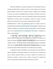 Señala Pries (2000b) que los grupos de trabajo de la Ford-Hermosillo forman una estructura que también incluye a gerentes y asesores. La cual se organiza en tres niveles con funciones distintas. El primer nivel lo ocupan los técnicos; el segundo nivel lo componen los asesores que cuentan con habilidades técnicas avanzadas, cuya función es proveer las actividades de soporte necesario; el tercer nivel corresponde a gerentes de área, personal del departamento de asesoría, gerente de manufactura y gerente de la planta. Los cuales planean y son el soporte de los otros niveles de la organización (Pries, 2000b). Flexibilidad laboral: se utiliza como justificación por parte de la empresa el tema de la productividad para flexibilizar los derechos laborales de los trabajadores rompiendo con las conquistas plasmadas en los contratos colectivos (Lóyzaga, 2002). El papel del sindicato como un actor importante dentro de las negociaciones entre empresa y trabajadores, se diluye, es parte del pasado. Con las políticas de ajuste estructural en México, de reducción del margen de actuación tanto del Estado como de los sindicatos en el contexto de la década de los ochenta, los sindicatos no pudieron defender a los trabajadores de los costos sociales de las “medidas de ajuste” y tuvieron que asumir la enorme pérdida del salario real (Dombois, 1998). Ahora la situación laboral de un gran número de trabajadores depende de la relación y acuerdos que logren establecer directamente con la empresa para la que trabajan. Un ejemplo de este tipo de flexibilidad es el que menciona De la Garza (2006) en la industria maquiladora de exportación asentada en el norte del país, que se caracteriza por tener un modelo contractual flexible, que excluye al sindicato de la mayoría de las decisiones que afectan a la mano de obra, y faculta a la gerencia de la empresa para moverse con gran libertad e imponer las reglas de contratación y ascensos. 48