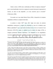 20 Desde su inicio, la IME estuvo conformada por filiales de empresas extranjeras que se vieron beneficiadas a través de un régimen de exención fiscal para la importación de 21 insumos, de mano de obra disponible y de otros incentivos para la inversión (Villavicencio, 2006). De acuerdo con lo que señala Patricia Wison (1996), el desarrollo de la industria maquiladora en México se compone de dos fases: 22 La primera va desde 1965 hasta 1982. Según esta autora, las primeras maquiladoras construyeron la imagen que actualmente se tiene de la industria como 23 fábricas explotadoras que se aprovechan de obreras jóvenes. Fue en el sexenio de Luis Echeverría (1970-1976) cuando se estableció una ley federal del trabajo (1970); se otorgaron prestaciones laborales importantes a los trabajadores de las maquiladoras: vacaciones pagadas obligatorias; aguinaldo; programas de capacitación y de recreación obligatorios; prestaciones por jubilación, cesantía y defunción pagadas por el patrón. 20 Bustamante (1989) explica que los primeros inversionistas extranjeros que instalaron maquiladoras en ciudades de la frontera norte de México, estaban obligados por la ley, a que su participación en el capital social de la empresa no excediera el 49 por ciento de las acciones. En 1971, se dictó un decreto que modificó esta situación: ahora el capital social de la empresa maquiladora podía ser 100 por ciento de origen extranjero (Bustamante 1989, 98). 21 Sklair y Pineda (1992) señalan que hasta los años setenta la inversión extranjera se enfocaba a productos como automóviles y textiles; y la inversión en los años ochenta estuvo más dirigida a las industrias de ensamblado orientadas al procesamiento de exportaciones como la electrónica, maquinaria, refacciones para automóviles, prendas de vestir y artículos deportivos (Sklair y Pineda 1992, 164). 22 En 1965, en la zona fronteriza de México, se habían instalado 12 empresas maquiladoras que daban empleo a 3 087 trabajadores; para 1971, el número de maquiladoras era de 209 y empleaban a 29 mil trabajadores; y en 1974, el número de maquilas se elevó a 516 con 56 253 empleados (Bustamante 1989, 99). 23 De acuerdo con lo que señala Cockcroft, los trabajadores mexicanos recibían salarios mucho menores que los pagados a trabajadores estadunidenses en las mismas industrias, trabajaban jornadas más largas y producían más por hora con mayores riesgos para su salud. De las empleadas por las 500 plantas establecidas en la zona fronteriza entre 1965 y 1975, la mayoría (el 85 %) eran mujeres solteras mal pagadas de entre dieciséis y veintitrés años de edad (Cockcroft 2001, 204). 53