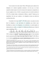 En este contexto de los años setenta, Wilson (1996) apunta que los salarios de los trabajadores de la industria maquiladora aumentaron a tal nivel que ya no fueron competitivos (desde el punto de vista de los intereses de las empresas) en comparación con los que se pagaban en Asia y el Caribe. Lo que generó, junto con la recesión económica de 24 1973-1974 en Estados Unidos, la disminución de fábricas y empleos ofrecidos por las maquiladoras. Esto hizo que el gobierno y los trabajadores tuvieran una actitud más conciliatoria hacia ellas. 25 El presidente José López Portillo (1976-1982) mantuvo una postura más dura hacia los trabajadores, lo que aprovecharon las maquiladoras para obtener mayor flexibilidad con relación a sus trabajadores: a los ineficientes se les podía despedir sin indemnización por cesantía, y se redujeron las contribuciones del patrón para el fondo del seguro social (Wilson, 1996). La segunda fase va desde 1982 a la fecha. Menciona Wilson (1996) que a partir de 26 1982 la estrategia de desarrollo del gobierno mexicano se orientó de forma importante 27 hacia las exportaciones. En el sexenio del presidente Miguel de la Madrid (1982-1988), se vio a la industria maquiladora como un sector fundamental para la economía, como una 24 Menciona Cockcroft (2001) que en el periodo entre 1965 y 1982, en México se crearon aproximadamente 140 mil empleos por parte de la industria maquiladora; mientras que en el contexto del neoliberalismo, sobre todo a partir de la firma del TLCAN en 1994, la economía se “maquiladorizó”, elevando el número de empleos hasta un millón en esta industria (Cockcroft 2001, 205). 25 El presidente López Portillo introdujo un nuevo programa promocional para la industria maquiladora llamado Alianza para la Producción, que reducía los trámites burocráticos necesarios para establecer una maquiladora (Wilson 1996, 82). 26 Como menciona Wilson (1996), antes la industria maquiladora era sobre todo un programa de fomento regional en la estrategia de sustitución de importaciones (Wilson 1996, 82). 27 Wilson (1996) señala que a raíz de las devaluaciones del peso y los estímulos del gobierno de De la Madrid, la industria maquiladora se convirtió en la fuente de divisas más importante para México, después del petróleo (Wilson 1996, 83). 54
