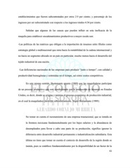establecimientos que fueron subcontratados por otros 2.9 por ciento; y porcentaje de los ingresos por ser subcontratado con respecto a los ingresos totales 4.54 por ciento. Señalan que algunas de las causas que pueden influir en esta ineficacia de la maquila para establecer encadenamientos productivos a mayor escala son: -Las políticas de las matrices que obligan a la importación de insumos entre filiales como estrategia global o multinacional que mira hacia la rentabilidad de la cadena internacional y no hacia un segmento ubicado en un país en particular, mucho menos hacia el desarrollo del tejido industrial de una nación. -Las deficiencias nacionales de las empresas para producir “justo a tiempo”, con calidad y productividad homogéneas y sostenidas en el tiempo, así como costos competitivos. En este mismo sentido, Bustamante apunta (1989) que las maquiladoras participan de un proceso productivo que está condicionado por la producción de insumos en Estados Unidos, es decir, donde se origina y termina el proceso económico de producción industrial, en el cual la maquiladora participa subsidiariamente. Según Bustamante (1989): No tomar en cuenta el razonamiento de una empresa trasnacional, que se instala en la frontera mexicana fundamentalmente por los bajos salarios y la abundancia de desempleados para llevar a cabo una parte de su producción, significa ignorar la diferencia entre desarrollo industrial permanente e industrialización subsidiaria. Esta última no tiene que tomar en cuenta el contexto de desarrollo de la región donde se instala, pues se establece fundamentalmente por la disponibilidad de un factor de la 61