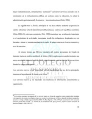 41 mayor industrialización, urbanización y expansión del sector servicios asociado con el crecimiento de la infraestructura pública, en sectores como la educación, la salud, la administración gubernamental, el comercio y las comunicaciones (Ortiz, 2006). La segunda fase se inicia a principios de los años ochenta mediante un proceso de cambio estructural a través de reformas institucionales y cambios en la política económica (Ortiz, 2006). En este nuevo contexto, Ortiz (2006) menciona que un elemento importante es el surgimiento de actividades marginales, donde los trabajadores desplazados se ven forzados a buscar el sustento mediante actividades de sobrevivencia en el sector comercio y en el de servicios. Al mismo tiempo que México transitaba del modelo keynesiano de Estado de bienestar hacia un modelo neoliberal, de Mateo (2005) explica que se estaba iniciando una nueva revolución industrial a nivel global, específicamente, una revolución de los servicios. Siendo los rasgos principales: -Los servicios nuevos y los “mejorados” se han transformado en uno de los principales insumos en la producción de bienes y servicios. -Los servicios nuevos y los mejorados son intensivos en información, conocimientos y organización. 41 En los países avanzados la expansión de los servicios ocurre con formas de ocupación de alta productividad vinculadas a la integración de ciencia y tecnología en el proceso productivo, mientras que en México depende de trabajos marginales, precarios o de baja calidad ocupacional (Ortiz 2006, 87). Para Zepeda y Félix (1995), la terciarización de la economía mexicana puede estar asociada a un aumento de la informalidad más que a procesos propios de nueva economía de servicios (Zepeda y Félix 1995, 15). 66