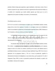 permiten: falta de tiempo para capacitarse, seguir estudiando y rolar tareas y turnos. Esto se conecta con parte de lo que plantea la teoría de la segmentación del mercado del trabajo, en el sentido de lo importante que resulta estudiar aspectos que tienen que ver con la asignación de los puestos de trabajo, los ascensos y la remuneración. Flexibilidad numérica externa En las ECN son más las características de rigidez que de flexibilidad numérica externa, porque sólo en dos de las empresas el contrato es por algunos meses con la finalidad de cubrir las necesidades de producción de determinada temporada (Osuna, 2008). Mientras en las 10 restantes se ofrecen contratos por tiempo indefinido. La flexibilidad numérica externa no se ha introducido en las ECE, porque las tres ofrecen contratos por tiempo indefinido. Los contratos de corta duración no existen, ni la subcontratación de trabajadores. MX presenta tanto características de rigidez como de flexibilidad numérica externa. Por un lado, la contratación de los trabajadores se establece directamente con la empresa, aunque al inicio se les ofrece un contrato a prueba por tres meses, más adelante tienen la posibilidad de obtener un nuevo contrato por tiempo indefinido (Vega, 2007). Por el otro, la aplicación de los programas Kaisen y 5’Ss en el área de producción, significó la disminución del número de trabajadores en una misma línea, que ha pasado de 18 a sólo 4 integrantes (Vega, 2007), es decir, el personal de producción fue reducido, se ajustó a las necesidades e intereses de la empresa. 82