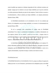 cuota de pedidos que requieren en distintas temporadas del año: uniformes escolares, por ejemplo. Agrega que los contratos no son por tiempo indefinido, por lo que las costureras no reciben prestaciones laborales por parte de estas empresas. Cuatro de ellas no recurren a la subcontratación y ofrecen contratos por tiempo indefinido y con algunas prestaciones laborales (Osuna, 2008). La flexibilidad externalizada no se ha introducido en las ECE. Los contratos que ofrecen a los trabajadores son por tiempo indefinido y no recurren a la subcontratación de personal (Osuna, 2008). En MX se presentan tanto características de rigidez como de flexibilidad externalizada. Por un lado, la contratación de trabajadores se establece directamente con esta empresa, primero con un contrato a prueba por tres meses, y después tienen la posibilidad de obtener un nuevo contrato por tiempo indefinido. Por el otro, el personal de limpieza y mantenimiento pertenece a otra empresa subcontratada por MX. La flexibilidad externalizada está presente de forma importante en la empresa MY, porque subcontrata personal por medio de la empresa Manpower, encargada de proveerle trabajadores para sus diferentes áreas, es decir, el contrato se establece a través de la empresa subcontratada y el periodo de tiempo va desde un mes hasta tres meses. Flexibilidad funcional La flexibilidad funcional no se ha introducido en las ECN, porque no utilizan el esquema de trabajo que tiene ver con la formación y polivalencia de los trabajadores para su movilidad 85