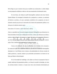 18 Silvia Pappe en que el contexto tiene que ser también una construcción o se debe trabajar con una perspectiva definida, no debe ser sólo una acumulación de información inerte. De esta forma, este trabajo de perfil historiográfico analizará cómo hace historia Quentin Skinner. Se investigará la formación de su perspectiva, su entorno, su conciencia de historia, su escritura, y los ejes o principios constitutivos de su propuesta, así como el elemento esencial que provoca la renovación de la historia del pensamiento político en su obra que es la relación contexto-sujeto. Antecedentes. El contexto y sujeto skinneriano a debate. Ahora se expondrán muy brevemente algunos elementos bibliográficos que destacan por su forma de abordar el tema que se trabaja para esta tesis, es decir, que enfocaron sus críticas y posturas sobre la función del contexto y el papel del sujeto en la perspectiva Skinneria y que fueron de vital importancia para concentrarse precisamente en el asunto del contexto- sujeto. Esto se analizará más ampliamente a lo largo de la tesis. Como se irá estudiando con mayor profundidad, en las décadas de los cincuenta y los sesenta del siglo XX la tradicional historia de las ideas fue el ambiente historiográfico dominante en el cuál Skinner estuvo inmerso, ahí predominaban las diversas escuelas de índole positivista y marxista ortodoxo que practicaban precisamente esa historia de las ideas que Skinner criticará después En la Universidad de Cambridge se fue dando un divorcio de perspectiva hacia el estudio tradicional del pensamiento político y su forma de concebir la ideología, así como de corrientes donde el contexto y el sujeto eran vistos como elementos determinados por