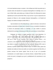 23 es de suma importancia porque se expresan varios enfoques pero desde una postura que se encuentra dentro del desarrollo de la propuesta historiográfica de Cambridge como es el caso de Mark Goldie, quien plantea que el trabajo de Skinner fue influenciado de manera importante por la teoría social de Max Weber, lo que nos hace ver que la composición de la propuesta de Skinner no sólo contempla elementos historiográficos y de filosofía del lenguaje, sino también sociológicos (Goldie 2006, 3). Aquí encontramos una crítica balanceada que explica la relevancia e innovación de la postura contextualista de Skinner para la situación en que se encontraba la disciplina de la historia del pensamiento político en Cambridge, así como también la presencia intelectual de la sociología weberiana que no había sido reconocida por el mismo Skinner. Finalmente, los estudios en español específicos sobre la obra skinneriana y la perspectiva contextualista son casi nulos. En España, el texto recientemente publicado en 2007 que se titula: El giro contextual. Cinco ensayos de Quentin Skinner y seis comentarios, está compuesto de diversos enfoques por distintos especialistas en el tema cuyo objetivo es ampliar el entendimiento del “giro contextual” (Bocardo 2007), como lo denomina el profesor español Enrique Bocardo Crespo. En América Latina, quienes han abordado esta temática de forma más notable son el profesor argentino José Elías Palti y el profesor mexicano José Antonio Aguilar. Fuera de esto, lo que se ha presentado recientemente en el mundo hispano son entrevistas directas a Quentin Skinner que han servido más para la divulgación que para la profundización del conocimiento de esta perspectiva.
