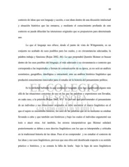 49 contexto de ideas que son lenguaje y acción, o sea ideas dentro de una discusión intelectual y situación histórica que las enmarca, y mediante el conocimiento profundo de este contexto se puede dilucidar las intensiones originales que se propusieron para determinado uso. Lo que el lenguaje nos ofrece, desde el punto de vista de Wittgenstein, es un conjunto no acabado de usos posibles para los cuales, y en circunstancias adecuadas, la palabra trabaja y funciona (Rojas 2002, 46). Lo que propondrá Quentin Skinner es buscar dentro de los usos posibles del lenguaje, el más adecuado a su circunstancia o contexto que corresponda a las inquietudes y formas de comunicación de su época, ya no será un análisis económico, geográfico, ideológico o estructural, sino un análisis histórico lingüístico que producirá conocimiento innovador para el estudio de la historia del pensamiento político. Es la sociedad hablante la que sostiene el lenguaje; y no hay significado alguno más allá de las situaciones concretas de uso en las que las palabras y expresiones son llevadas, en cada caso, a la práctica (Rojas 2002, 47). Es por eso que para entender el pensamiento de un individuo y sus intenciones originales se debe encontrar el marco lingüístico en el que el sujeto se encontraba inmerso, los usos de las palabras que en su momento se estaban llevando a cabo y que también son históricos y bajo los cuales el individuo argumentó sus tesis o atacó otras. Así también, los errores interpretativos que Skinner señalará posteriormente se deben a esos desvíos lingüísticos con los que se interpretaba y criticaba en la tradicional historia de las ideas. Pues al no comprender y no estudiar el contexto de las ideas y sus usos lingüísticos, provoca que una obra esté desubicada respecto a su sentido práctico e histórico, y se cometa la falla de leerla bajo la lupa de usos lingüísticos