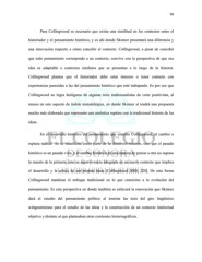 56 Para Collingwood es necesario que exista una similitud en los contextos entre el historiador y el pensamiento histórico, y es ahí donde Skinner presentará una diferencia y una innovación respecto a cómo concebir el contexto. Collingwood, a pesar de concebir que todo pensamiento corresponde a un contexto, convive con la perspectiva de que esa idea es adaptable a contextos similares que se presentan a lo largo de la historia. Collingwood plantea que el historiador debe estar inmerso o tener contacto con experiencias parecidas a las del pensamiento histórico que esté trabajando. Es por eso que Collingwood no logra desligarse de algunas tesis tradicionalistas de corte positivista, al menos en este aspecto de índole metodológica, en donde Skinner sí tendrá una propuesta mucho más elaborada que represente una auténtica ruptura con la tradicional historia de las ideas. En el desarrollo histórico del pensamiento que concibe Collingwood, el cambio o ruptura radical no se manifiesta como parte de su desenvolvimiento, sino que el pasado histórico es un pasado vivo, y el cambio histórico de una manera de pensar a otra no supone la muerte de la primera, sino su supervivencia integrada en un nuevo contexto que implica el desarrollo y la crítica de sus propias ideas (Collingwood 2000, 220). De esta forma Collingwood mantiene el enfoque tradicional en lo que concierne a la evolución del pensamiento. Es esta perspectiva en donde también se enfocará la renovación que Skinner dará al estudio del pensamiento político al insertar las tesis del giro lingüístico wittgenstiniano para el estudio de las ideas y la construcción de un contexto intelectual objetivo y distinto al que planteaban otras corrientes historiográficas.
