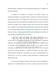 65 problemas políticos, censurando de esta forma aquellos pensadores que no se adaptan a las doctrinas establecidas. La segunda es la “mitología de la coherencia”, ésta consiste en llegar a una interpretación unificada; lo cual significa obtener una perspectiva coherente del sistema de un autor (Skinner 2007b, 129). El intérprete de los textos tiene que revelar una coherencia interna que quizás nunca haya alcanzado ni pretendido alcanzar el autor del texto. Skinner muestra como ejemplo de estos trabajos la obra de John Locke que ha sido considerada como un trabajo de teoría liberal, sin poner atención que en sus primeros escritos defendía el conservadurismo (Skinner 2007b, 132). Esto hace que las explicaciones de la tradicional historia de las ideas no sean genuinamente históricas y alteren fuertemente el sentido de los textos, dándoles otro significado fuera de su contexto. La tercera es la “mitología de la prolepsis” que es áquella que se aplica cuando hay un mayor interés en la significación retrospectiva de la obra. Para Skinner, la característica principal de esta mitología es la fusión de la necesaria asimetría entre la significación que un observador puede justificadamente afirmar encontrar en un episodio histórico determinado, y el significado de ese mismo episodio (Skinner 2007b, 138). De la mano de esta última se encuentra finalmente la “mitología del localismo” que surge cuando se aplican criterios de clasificación y discriminación con los que se está familiarizado en su contexto local, y de ahí que su análisis se adapte erróneamente en argumentos ajenos (Skinner 2007b, 140). Con estas cuatro mitologías de carácter crítico, Skinner socava la metodología y producción de la tradicional historia de las ideas, y propone una innovadora forma de