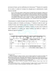 provincias de Sonora, que fue reedificada por los franciscanos. 160 Después de la expulsión de los jesuitas, la misión de Cocóspera fue entregada para su administración al padre Francisco Iturralde Son los efectos que entrega el padre Francisco Iturralde hijo del Apostólico Colegio de la Santa Cruz de Querétaro a cuyo cuidado ha estado ésta misión de Santiago de Cocóspera, en lo perteneciente a la iglesia desde el día 13 de julio del año de 1768, en lo perteneciente a las temporalidades y desde el día 22 del mes de junio de 1769 años hasta el día presente 15 de abril de 1784 año, en que la recibe a su cargo el padre fray Juan Santiesteban 161 predicador apostólico e hijo de esta apostólica y real Custodia de San Carlos de Sonora. Posteriormente en el padrón del padre Juan de Santiesteban en 1796, 162 se menciona que Cocóspera contaba con 18 familias con 68 pimas y 17 familias de “gente de razón” que sumaban 59 almas, más 6 familias yaquis con 17 personas. De la misma manera en1801, se reportan 65 pimas, distribuidos en 21 familias, 2 mulatos y un yuma, más 30 “gentes de razón” integrados en 14 mulatos que hacían 4 familias, una familia de 7 ópatas y 3 familias de yaquis de 9 personas. 163 Figura 16. Comparativo de la población de la misión de Cocóspera en el período franciscano de 1772 a 164 1801 Fechas Indios pimas “Gente de razón” y castas total 1768 a 1772 Suamca y 110 110 Cocóspera 1784 68 68 1796 68 76 (59 de “razón” y 17 yaquis). 144 1801 65 30 (14 mulatos, 7 opatas, 9 yaquis) 95 160 Ocaranza, 230. 161 AFSCQ. Documento 23, legajo 16, letra K. Acta de entrega recepción de la misión de Cocóspera, del padre Francisco Iturralde a fray Juan de Santiesteban que recibe a nombre de la Custodia de San Carlos 162 Archivo Parroquial de Sonora. Microfilms, rollo 75. Biblioteca “Ernesto López Yescas” del Centro INAH Sonora. Informe del padre Juan de Santiesteban de la misión de Santiago de Cocóspera, dirigido al Obispo Francisco Rousset, el día 9 de septiembre de 1796. En adelante APS. 163 Medina, 134-135. Rollo 99 Archivos Parroquiales. Microfilm. Biblioteca “Ernesto López Yescas” del INAH-Sonora 164 De los Reyes, Relación hecha..., 24. AFSCQ. Documento 23, legajo 16, letra K. Acta de entrega recepción de la misión de Cocóspera, Archivos Parroquiales. Microfilms, rollo 75. Medina, 134-135
