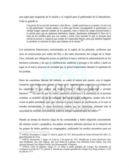 una copia para resguardo de la misión y el original para el gobernador de la Intendencia. Todo se guardó en Una pieza de la casa del misionero a dos llaves…tendrá usted una en su poder y la otra con la del gobernador. Cuando ambos a la falta que hiciere encargándole al gobernador y al alcalde tengan especial cuidado de los ganados, reses y bienes de campo pertenecientes a la misión para que no padezcan detrimento alguno, igualmente embargará la llave de la troje de las semillas para que con cuenta y razón vaya sacando lo que se necesite para ración de peones y vaqueros que cuidan los expresados bienes, para que también llegando 168 la siembras se racionen los hijos que trabajan en la misma. Los misioneros franciscanos comisionados en la región de las pimerías, recibieron una serie de instrucciones por orden del Rey y del santo discretorio del colegio de la Santa Cruz, teniendo por obligación poner en práctica el nuevo método de administración de las misiones existentes y las que se establecieran, tendiente a proteger a los indios y darle un lugar en el nuevo proyecto de sociedad que se pensó implementar durante la expulsión de los jesuitas. Entre las cuestiones básicas del método, se contó al menos por escrito, con el respeto irrestricto a los indios para ejercer el “trato civil, comunicación, comercio y vecindad con los españoles, el que posean sus bienes, frutos y efectos en particular y privado dominio”. 169 En caso de que los indios opusieran resistencia a la enseñanza de la doctrina cristiana, se prohibió el uso de cualquier otro recurso para corregirlos, siendo sólo el de avisar al padre presidente para que valorara la mejor manera de pacificación, si el caso se tornaba incontrolable, el santo discretorio tendría que ser informado, teniendo este la necesidad de solicitar a los justicias reales el castigo requerido para los indios. 170 Pasado un tiempo de hacerse cargo de las comunidades y haber adquirido conocimiento del entorno social y geográfico, los padres enviaron informes precisos de la situación de los grupos de indios gentiles no congregados, explicando los medios necesarios para ser 168 AFSCQ. Documento 3, legajo 27, letra K, agosto de 1767. Real presidio de Santa Gertrudis del Altar. Lo firma Bernardo de Urrea 169 AFSCQ. Documento 3, legajo 14, Letra K, 4 de agosto de 1767, firmado por el santo discretorio: fray Juan Hernández, fray Juan Salazar, fray José María de Ledesma, fray Sebastián Flores Juárez, fray José Antonio Bernard, fray Miguel Pinilla, fray Hermenegildo Villaplana.. 170 AFSCQ. Libro de patentes, legajo 25. Lo firma el padre guardián del Colegio fray Romualdo de Cartagena en el año de 1772. patente 4, firmado por el padre guardián del Colegio fray Diego Jiménez , el 20 de julio de 1777