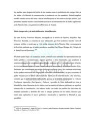 los pueblos poco después del exilio de los jesuitas como la prohibición del castigo físico a los indios y la libertad de comunicación y residencia con los españoles. Faltaría ampliar nuestro estudio acerca del tema e iniciar una búsqueda en los archivos de tipo judicial, que permitiría ampliar nuestro conocimiento acerca de la instrumentación de dicho reglamento en la Pimería Alta y en general en la Provincia de Sonora. Visita inesperada y de mala influencia: ideas liberales. En carta de fray Francisco Moyano, encargado de la misión de Oquitoa, dirigida a fray Francisco Iturralde, se comenta un caso interesante, que bien podemos insertar como el contexto político y social que se vivió en las misiones de la Pimería Alta, a consecuencia de la visita realizada por el padre presidente guardián Fray Diego Bringas del Colegio de la Santa Cruz de Querétaro. 199 El citado padre llegó a la ciudad de Arizpe, donde le tocó enfrentar las representaciones de indios gileños y cocomaricopas, algunos gentiles y otros bautizados, que acudieron a solicitar misioneros al comandante general para reducirse a vivir en misiones por el hecho de vivir en extrema pobreza, como consecuencia de las sequías y de haberse secado el río, fenómeno que consideraron un castigo divino por no hacer caso a las continuas solicitudes de los padres misioneros de congregarse en misión. Posteriormente, un poco resentido el padre Moyano por no haber sido tomado en cuenta en el recorrido hecho a las misiones, comenta que el padre prefecto, había hecho patente en la misión, comenzando la visita en Cocóspera, siguiendo a San Ignacio y Caborca y presidio de Altar, dedicando su visita a difundir las ideas libertarias de los indios, con la ocasión de haberse publicado en aquellos mismos días la constitución y de haberse hecho con todos los pueblos las elecciones de alcaldes nacionales y abolidos del todo el antiguo gobierno de los indios, discurso que tomó para explicarles el nuevo gobierno e inculcarlos y repetirles la libertad en que quedaban 199 AFSCQ. Documento 5, legajo 26, letra K. Carta del padre Francisco Moyano enviada al padre Francisco Iturralde, en Oquitoa a 5 de julio de 1814