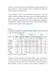 La figura 22, (en el punto de anexos) muestra la totalidad de los géneros producidos en los pueblos durante los tres años, incluyendo el número de población que contaba cada cabecera de misión y sus pueblos de visita. El trigo representó el cultivo de mayor producción, posteriormente, el maíz, frijol, garbanzo y por último la lenteja, no queriendo decir, que se hayan dejado de producir otros géneros como la calabaza, hortalizas y árboles frutales. En lo que respecta al ganado mayor, los pobladores de la Pimería Alta, en esos años se distinguieron por desempeñar la actividad ganadera, ocupando el ganado vacuno el mayor número de producción, después lo seguían las cabras y borregos, caballos, mulas y burros. Figura 21. Concentrado de población e inventarios de cosechas y ganados. Suma de tres años en 1818, 1819, 1820 de la Pimería Alta. Población Cosechas F* Ganado Misiones indios Españoles Total trigo maíz vacuno lanar caballar castas cabrío San Ignacio 146 4166 4312 669 180 4800 2933 334 Cocóspera 274 214 488 546 132 4140 1569 554 Tubutama 99 517 616 940 92 8040 2670 820 Oquitoa 404 525 929 717 46 7390 1249 1038 San J. del Bac 969 141 1109 880 79 17983 2978 659 Tumacácori 367 205 572 614 12 16500 4180 1690 Sáric 54 196 250 725 35 1600 2400 187 Caborca 1112 437 1549 1006 189 2045 1182 695 Totales 3425 6401 9825 6097* 765* 62498 19161 5977 *Fanegas = 55.5 litros=12 almudes=12 celemines La figura 21, muestra la suma total de los indios, españoles y castas que poblaron las misiones en 1818, 1819 y 1820, tomando en cuenta que los pobladores “hijos de misión” se constituían por diferentes castas, como hemos apreciado ya en padrones anteriores. Debo mencionar, que según los informes el mayor número de población no es