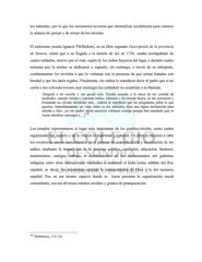 los naturales, por lo que los misioneros tuvieron que internalizar socialmente para conocer la manera de pensar y de actuar de los mismos. El misionero jesuita Ignacio Pfefferkorn, en su libro segundo Descripción de la provincia de Sonora, relata que a su llegada a la misión de Ati en 1756, estaba acompañado de cuatro soldados, motivo por el cual, según él, los indios huyeron del lugar y durante cuatro semanas por la noches se dedicaron a espiarlo, sin embargo, a través de su intérprete, continuamente los invitaba a que lo visitaran con la promesa de que serían tratados con bondad y que les daría regalos. Finalmente, los indios le mandaron decir al padre que si no corría a los schondariootam (sus enemigos los soldados) no acudirían a su llamado. Despedí a mi escolta y me quedé sólo. Estaba sentado a la mesa en mi comida de mediodía, cuando treinta o cuarenta indios, robustos y de mirada hosca, se me acercaron y formando un círculo alrededor mío…ordené al interprete que les preguntara sobre lo que querían. Inmediatamente un viejo indio se me adelantó, hizo una ligera inclinación para saludar y dijo: ¡ya ves padre! ahora nosotros venimos contigo porque has mandado que se 242 vayan nuestros enemigos […]. Los templos representaron el lugar más importante de los pueblos-misión, como centro organizador del espacio y de la vida en lo espiritual y material. En ellos se llevaron a cabo los eventos de mayor trascendencia en el proceso de evangelización y dominación de los indios, mediante la impartición de la doctrina católica, confesión, educación, bautizos, matrimonios, castigos, trabajo, el nombramiento de los representantes del gobierno indígena, entre otras instrucciones tendientes a mantener al indio como súbdito del Rey español, es decir, los misioneros ejercían la representación de Dios y la del monarca español. Fue en ese mismo espacio donde se hacia presente la organización social comunitaria, con sus diversos estratos sociales y grados de jerarquización. 242 Pfefferkorn, 133-134.