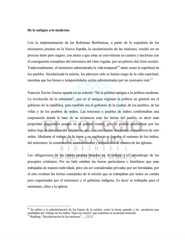 De lo antiguo a lo moderno. Con la implementación de las Reformas Borbónicas, a partir de la expulsión de los misioneros jesuitas en la Nueva España, la secularización de las misiones, resultó ser un proceso lento pero seguro, con miras a que estas se convirtieran en curatos y doctrinas con el consiguiente reemplazo del misionero del clero regular, por un párroco del clero secular. 16 Tradicionalmente, el misionero administraba la vida temporal tanto como la espiritual de los pueblos. Secularizada la misión, los párrocos sólo se harían cargo de la vida espiritual, 17 mientras que los bienes o temporalidades serían administrados por un comisario real. Francois Xavier Guerra apunta en su artículo “De la política antigua a la política moderna. La revolución de la soberanía”, que en el antiguo régimen la política en general era el gobierno de la república, pero también era el gobierno de la ciudad, de los pueblos, de las villas y de los pueblos de indios. Las misiones o pueblos de indios conformaban una corporación donde la base de su existencia eran las tierras del pueblo, es decir eran propiedad corporativa porque no se podían vender, sólo se podían usufructuar por los indios bajo la dirección del misionero, que a su vez fueron elementos corporativos de otro orden. Mediante el trabajo de la tierra y su usufructo se lograba el sustento de los indios, del misionero, la construcción, mantenimiento y adquisición de ornatos de las iglesias. Las obligaciones de los indios estaban basadas en el trabajo y el aprendizaje de los preceptos cristianos. Por un lado estaban las tierras particulares o familiares que eran trabajadas de manera individual, pero sin ser consideradas privadas por ser heredadas, por el otro existían las tierras comunales de la misión que se trabajaban por todos en común pero organizadas por el misionero y el gobierno indígena. Es decir se trabajaba para el misionero, ellos y la iglesia. 16 Se refiere a la administración de los bienes de la misión, como la tierra, ganado y los productos que resultaban del trabajo de los indios “hijos de misión” que sostenían la economía misional. 17 Radding, “Secularización de las misiones”…, 12-21.