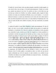 El pueblo de visita de Imuris, tenía una iglesia pequeña construida de adobe pegada a la casa como de doce varas de largo y 4 de ancho aproximadamente. Contaba con un altar que contenía una pintura de san José. Su sacristía era chica, en ella había una caja mexicana que contenía tres frontales, tres casullas, manípulos, paños, cíngulos de latón, manteles con encajes, dos cornualtares de Bretaña, un ara, cruz de madera […]. La casa de adobe del misionero se reporta muy deteriorada con los muros del norte caídos desde la base, los techos del poniente casi por caerse, en la sala estaban por desplomarse dos o tres vigas. El cuarto del lado norte contaba con puerta y llave que comunicaba a la sacristía […]. 266 La iglesia del pueblo de santa María Magdalena, medía aproximadamente 28 varas de largo y de cinco a seis de ancho, construida de adobe con una grieta en la esquina del frontispicio y el presbiterio. En el lado de la epístola, en el presbiterio existía una puerta que comunicaba al patio, mientras que al lado del evangelio en el mismo presbiterio se encontraba la sacristía con puerta de dos batientes con llave y cerrojo, hay otra puerta pequeña que conduce al cuarto de la casa. Cuenta con tres altares o cuadros. Un nicho en la pared del altar mayor, contiene un cuadro de santa María Magdalena como de dos varas con su marco dorado ya entrado en años. Al lado de la epístola, debajo del presbiterio en un arco de la pared se localizaba un cuadro de Nuestra Señora de la Luz, mientras que al lado del evangelio, enfrente, colgaba un cuadro de la Virgen de Guadalupe de las mismas dimensiones. Los muebles de la iglesia lo constituían una mesa grande y tres bancas con respaldo. Debajo del cuadro de la virgen de Guadalupe, había una puerta que comunicaba al camposanto, más adelante había otra que facilitaba el acceso a la capilla de san Francisco Javier. En dicha capilla, se encontraba un altar y un nicho con una urna de madera sobredorada que servía de aposento al santo acostado en un colchón de saya columbina, dos sábanas con sus fundas de Bretaña con encajes de Lorena… tres relicarios, dos de plata y uno de carey […]. 267 266 AFSCQ. Documento8, letra K, legajo 14, inventario de la iglesia de santa María Magdalena, firmando de entrega el comisario don Antonio de Velasco y recibiendo Fray Diego Martín García, el 25 de junio de 1768 267 Ibíd.