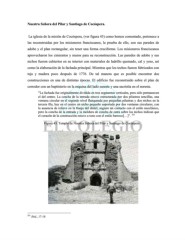 Nuestra Señora del Pilar y Santiago de Cocóspera. La iglesia de la misión de Cocóspera, (ver figura 43) como hemos comentado, pertenece a las reconstruidas por los misioneros franciscanos, la prueba de ello, son sus paredes de adobe y el plan rectangular, sin tener una forma cruciforme. Los misioneros franciscanos aprovecharon los cimientos y muros para su reconstrucción. Las paredes de adobe y sus nichos fueron cubiertos en su interior con materiales de ladrillo quemado, cal y yeso, así como la elaboración de la fachada principal. Mientras que los techos fueron fabricados con teja y madera poco después de 1776. De tal manera que es posible encontrar dos construcciones en una de distintas épocas. El edificio fue reconstruido sobre el plan de corredor con un baptisterio en la esquina del lado sureste y una sacristía en el noreste. “La fachada fue originalmente dividida en tres segmentos verticales, pero sólo permanecen el del centro. La concha de la entrada estuvo estructurada por dos pilastras sencillas, una ventana circular en el segundo nivel flanqueada por pequeñas pilastras y dos nichos en la tercera fila, hay en el centro un nicho pequeño soportado por dos ventanas circulares, con la ausencia de relieve en la franja del dintel, sugiere un contacto con el estilo neoclásico, pero la concha de la entrada y la moldura de concha de ostra sobre los nichos indican que el corazón de la construcción estuvo a tono con el estilo barroco[…]”. 321 Figura 43. Templo de Nuestra Señora del Pilar y Santiago de Cocóspera 321 Ibid., 17-18