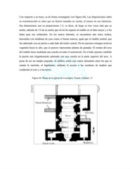 Con respecto a su trazo, es de forma rectangular (ver figura 44), Las disposiciones sobre su reconstrucción es claro que no fueron tomadas en cuenta, al menos en sus interiores. Sus dimensiones son en proporciones 1:3, es decir, de largo es tres veces más que su ancho, además de 1/4 de su ancho que sirvió de espacio al retablo en el altar mayor y a los lados para sus colaterales. En los muros laterales, se encuentran aún cinco nichos, decorados con molduras de yeso como si fueran marcos, igual que el retablo central, que fue adornado con un jarrón a cada lado del nicho central. De los jarrones emergen motivos vegetales hacia lo alto, que al parecer representan plantas de granada. El remate del arco del retablo tiene modelada una concha en todo el semicírculo. En el lado opuesto, también la puerta esta elegantemente adornada con una concha en la parte superior del arco. A pesar de ser un templo pequeño, el edificio contó con varios elementos entre los que se cuenta la sacristía, el baptisterio, enfrente el acceso a las escaleras de madera que conducían al coro y a las torres. Figura 44. Planta de la iglesia de Cocóspera. Fuente: Eckhart, 17.