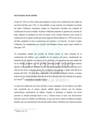 San Francisco Javier del Bac. El año de 1783 es el más común para designar el inicio de la construcción del templo de san Javier del Bac, pero 1781, es más probable, ya que coincide con la llegada a la misión del padre Velderrain, justamente cuando los franciscanos iniciaban una campaña de construcción de nuevos templos. El padre Velderrain poniendo en garantía las cosechas de trigo, adquirió un préstamo de siete mil pesos a don Antonio Herreros, para iniciar la construcción de la iglesia, deuda que nunca pagó por haber fallecido en 1790 en san Javier del Bac, quedando la nueva construcción sin terminar y sin decorar. Al morir el padre Velderrain, fue reemplazado por el padre Juan Bautista Llorens, quien logró concluir la obra para 1797. El comandante español del presidio de Tucsón realizó un costo estimado de la construcción del edificio, cuya cantidad fue de cuarenta mil pesos, considerando las amenazas de los apaches, los salarios de los artesanos y las gestiones para traer padres del sur de México aumentó su coste al doble. Además escribió “que la razón para adornar iglesias en los puestos de fronteras, no sólo era para congregar a los pimas cristianos de la villa de san Javier, sino para atraer por su belleza a los pápagos y pimas más allá de la frontera del Gila”. Por otra parte, regresando a la actividad del padre Llorens, se tienen noticias de que dirigió también el proyecto de la reconstrucción de la fachada de la iglesia de Tucsón 325 construida por el padre Garcés. La traza de la iglesia de san Javier del Bac es muy semejante a la de Caborca, por haber sido construida por el mismo maestro albañil Ignacio Gaona, con las mismas características constructivas de ladrillo. Aunque su ubicación es distinta, san Javier presenta su entrada principal hacia el sur y Caborca hacia el oeste. Sus decoraciones interiores como los retablos son diferentes, ya que san Javier conserva retablos de madera dorados, que son característicos del periodo tardío barroco. Mientras que Caborca presenta 325 Officer, et al”, 92.