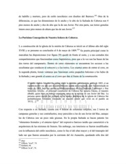 de ladrillo y mortero, pero de estilo neoclásico con diseños del Barroco. 326 Otra de la diferencias, es que las dimensiones de lo ancho y lo alto de la fachada de Caborca son 4 pies menos de ancho y dos de alto que la de san Javier. Por otra parte, sus torres gemelas tienen once pies menos de altura que las de san Javier. 327 La Purísima Concepción de Nuestra Señora de Caborca. L a construcción de la iglesia de la misión de Caborca se inició en el último año del siglo XVIII y se presume su conclusión el 8 de mayo de 1809. 328 Su puerta principal como lo marcaban las disposiciones (ver figura 29) quedó de frente al oeste, y a sus costados dos compartimientos que funcionaban como baptisterios, pero que a la vez son las bases de las dos torres del campanario. Dentro de estos elementos se encuentran los accesos a las escalinatas que conducen al sotocoro y a las torres. Los cuartos antes de entrar al coro, en la segunda planta, tienen ventanas que funcionan como pequeños balcones a los lados de la fachada y uno grande al centro en el coro que dan al frente de la construcción. El padre Andrés Sánchez fue quien inició la presente estructura no antes de 1803, si un reporte escrito ese año por el padre Moyano puede ser acreditado, este fue terminada en mayo de 1809, bajo las sucesivas administraciones de fray Santiago Usúastegui y fray Saturnino Arizeta…el principal constructor de Caborca fue Ignacio Gaona, el maestro albañil, quien hizo un trabajo semejante antes en la misión de san Javier del Bac. La persona quien realizó las pinturas en los muros interiores de la iglesia de Caborca fue probablemente Gordiano Escalante un maestro pintor que vivió en el pueblo en 329 1811[…]. Con respecto a su fachada, cuenta con 4 hileras de columnas estípites, sus 2 torres de campanas gemelas y sus contrafuertes, muy parecidos a las de san Javier del Bac, aunque las de Caborca son un poco más gruesas. En la propia fachada se hacen patente los “elementos formales y el entorno típico” del expresivo barroco tardío que caracterizó a la arquitectura de las misiones de Sonora. Sin embargo, sus interiores se fueron modificados con la influencia del estilo neoclásico, como lo fue el del altar mayor y el del transepto del lado sur que fueron arrasados por la corriente del río Asunción, quedando sólo dos del 326 Ibid. 327 Officer, “et al”, 74 328 Eckhart, 48. 329 Officer,“et al”, 74.