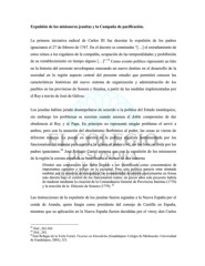 Expulsión de los misioneros jesuitas y la Campaña de pacificación. La primera iniciativa radical de Carlos III fue decretar la expulsión de los padres ignacianos el 27 de febrero de 1767. En el decreto se conminaba “[…] el extrañamiento de estos reinos a los regulares de la compañía, ocupación de las temporalidades y prohibición 23 de su restablecimiento en tiempo alguno […]”. Como evento político representó un hito en la historia del noroeste novohispano marcando un nuevo destino en el desarrollo de la sociedad en la región aspecto central del presente estudio que permitirá conocer las características históricas del nuevo sistema de organización y administración de los pueblos en las provincias de Sonora y Sinaloa, a partir de las medidas implementadas por el Rey a través de José de Gálvez. Los jesuitas habían jurado desempeñarse de acuerdo a la política del Estado monárquico, sin embargo los problemas se suscitan cuando asumen el doble compromiso de dar obediencia al Rey y al Papa. En principio no representó ningún problema el servir a ambos, pero con la asunción del absolutismo Borbónico al poder, las cosas se vieron de diferente manera. La puesta en marcha de la política regalista instrumentada por los funcionarios del imperio para sujetar a la iglesia al poder civil, no fue bien recibida por los 24 padres ignacianos. José Refugio Curiel expresa que con la expulsión de los misioneros de la región la corona española se beneficiaba al menos de dos maneras Eliminó una corporación que había llegado a ser identificada como concentradora de importantes capitales e influjo en la sociedad. Pero esta política parecía estar alentada también por la tentativa de reorganizar las comunidades de misión para situarlas en forma más directa bajo el control de los funcionarios reales: en pocos años este proyecto habría de madurar mediante la creación de la Comandancia General de Provincias Internas (1776) 25 y la erección de la Diócesis de Sonora (1779). Las instrucciones de la expulsión de los jesuitas fueron signadas a la Nueva España por el conde de Aranda, quien fungía como presidente del consejo de Castilla en España, mientras que su aplicación en la Nueva España fueron decididas por el virrey don Carlos 23 Ibíd., 262-265. 24 Ibíd., 263. 25 José Refugio de la Torre Curiel, Vicarios en Entredicho (Guadalajara: Colegio de Michoacán- Universidad de Guadalajara, 2001), 321.