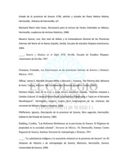 Estado de la provincia de Sonora 1730, edición y estudio de Flavio Molina Molina, Hermosillo, Diócesis de Hermosillo, s/f. Montané Martí Julio Cesar, Diccionario para la lectura de Textos Coloniales en México, Hermosillo, cuadernos de Archivo Histórico, 1998. Navarro García, Luís, Don José de Gálvez y la Comandancia General de las Provincias Internas del Norte de la Nueva España, Sevilla, Escuela de estudios Hispano-americanos, 1964. ____, Sonora y Sinaloa en el Siglo XVII, Sevilla. Escuela de Estudios Hispano- Americanos de Sevilla, 1967. Ocaranza, Fernando, Los franciscanos en las provincias internas de Sonora y Ostimuri, México: 1933. Officer, James E. Mardith Schuetz-Miller y Bernard L. Fontana, The Pimeria alta: Missions & more, Tucson, Arizona: The Southwestern missions Research Center, 1996. Pacheco Rojas, José de la Cruz y Jorge Arturo Gastélum Zepeda, “Sistema misional y Cambio Cultural. El devenir histórico de las provincias Tepehuana y Topia en el Noroeste Novohispano”, Hermosillo, Sonora: Cuarto foro internacional de las misiones del noroeste de México. Origen y Destino, 2006 Pfefferkom, Ignacio, Descripción de la provincia de Sonora, libro segundo, Hermosillo: Gobierno del Estado de Sonora, 1983. Radding, Cynthia, “Las Reformas Borbónicas en la provincias de Sonora: El Régimen de propiedad en la sociedad colonial”, Noroeste de México, 10, Hermosillo, Sonora: Centro Regional de Sonora, Instituto Nacional de Antropología e Historia, 1991. ____, “La subsistencia indígena y la economía misional en la provincia de Sonora” en XV Simposio de Historia y de antropología de Sonora, Memoria, Hermosillo, Sonora: Universidad de Sonora, 1990.