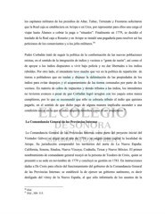 los capitanes militares de los presidios de Altar, Tubac, Terrenate y Fronteras solicitaron que la Real caja se estableciera en Arizpe o en Ures, por representar para ellos una carga el viajar hasta Álamos a cobrar la paga o “situados”. Finalmente en 1779, se decidió el traslado de la Real caja a Rosario y en Arizpe se instaló una pagaduría para resolver así las 50 peticiones de los comerciantes y a los jefes militares. Pedro Corbalán trató de seguir la política de la conformación de las nuevas poblaciones mixtas, en el sentido de la integración de indios y vecinos o “gente de razón”, así como el de apoyar a los indios dispuestos a vivir bajo policía y no dar libertades a los indios rebeldes. Por otro lado, el intendente tuvo mucho que ver en la política de repartición de tierras a pobladores que no tenían y dispuso la delimitación de las propiedades de los indios para evitar despojos y el acaparamiento de las tierras comunales por parte de los vecinos. En materia de cobro de impuestos y demás tributos a las indios, los intendentes no tuvieron avances a pesar de que Corbalán logró arreglos con los yaquis estos nunca cumplieron, por lo que se recomendó que sólo se cobraría tributo al indio que quisiera pagarlo, en el sentido de que dicho pago de alguna manera implicaba ascender a una 51 condición social en la que el indio adquiría derechos como el ser propietario. La Comandancia General de las Provincias Internas La Comandancia General de las Provincias Internas como parte del proyecto inicial del Visitador Gálvez se erigió en el año de 1776 y se asignó como capital la localidad de Arizpe. Su jurisdicción comprendió los territorios del norte de La Nueva España: California, Sonora, Sinaloa, Nueva Vizcaya, Coahuila, Texas y Nuevo México. El primer nombramiento de comandante general recayó en la persona de Teodoro de Croix, quien se presentó a su sede en noviembre de 1779 y concluyó su gestión en 1783. En instrucciones dadas a De Croix para efecto del funcionamiento del gobierno de la Comandancia General de las Provincias Internas: se estableció la de ejercer un gobierno autónomo, es decir desligado del virrey de la Nueva España, al que sólo informaría de los asuntos de la 50 Ibíd. 51 Ibíd., 308- 315.