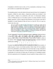 Comandancia se dividió de nuevo en dos, en 1811 su autonomía se retomó por el virrey, 55 pero la orden no se cumplió hasta el año siguiente. El comandante general, como jefe máximo de las provincias del norte, fue el encargado de transmitir y difundir las reales órdenes y disposiciones jurídicas que normaban la vida social, política y religiosa en su jurisdicción, sobre todo a los funcionarios militares, civiles y al Obispo para que a su vez las diera a conocer a su cuerpo eclesiástico. En pocas palabras representó y ejerció el papel del Real Patronato en las provincias como bien lo ejemplifica la circular firmada por Pedro de Neves en el año de 1794, en la que da a conocer entre otras cosas: Que en los pueblos de indios de todas las provincias de mi mando que cuenten más de diez años dada su reducción y fundación se reforme y quede abolido desde luego el antiguo método de comunidad […] que en las reducciones y pueblos antiguos queden los indios con la misma entera libertad que les conceden las leyes y disfrutan los españoles y demás castas llamadas de razón […] que de las mejores tierras fértiles e inmediatez que hiciese en cada pueblo, se separen y apliquen a los bienes de comunidad ocho suertes de 56 cuatrocientas varas de largo y de doscientas de ancho […]. En parte representa la esencia de las instrucciones que se implantaron en las provincias a la llegada del Visitador general, y en algunas ocasiones hemos planteado que fue materia legal que reguló, aunque de manera diferenciada, el actuar político, religioso y militar de las misiones. Dicho documento transcrito del original lo podemos encontrar al final del capítulo para su análisis. El aparato burocrático que formó parte de la Comandancia se reducía a un secretario, el auditor de guerra, el asesor y dos oficiales auxiliares. Desde Arizpe, De Croix mandaba a través de los gobernadores y jefes militares de las provincias bajo su cargo, incluyendo la de Sonora. Para no duplicar funciones, De Croix gestionó la liberación del mando militar al gobernador de la provincia de Sonora para ser ejercido por la Comandancia general. Otra de las aportaciones de la Comandancia, fue que el pueblo de Arizpe recibiera el 6 de 55 Ibíd. 56 Archivos Parroquiales de Sonora. Microfilms. Rollo 75, “Biblioteca Ernesto López Yescas” del INAH – Sonora. en adelante se citará como APS.
