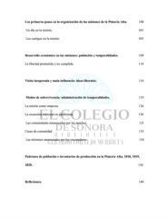 Los primeros pasos en la organización de las misiones de la Pimería Alta. 100 Un día en la misión. 103 Los castigos en la misión. 105 Desarrollo económico en las misiones: población y temporalidades. 109 La libertad prometida y no cumplida. 114 Visita inesperada y mala influencia: ideas liberales. 116 Modos de sobrevivencia: administración de temporalidades. 119 La misión como empresa. 126 La economía misional en problemas. 130 Las comunidades amenazadas por los apaches. 131 Casas de comunidad. 133 Las misiones amenazadas por los rescatadores. 134 Padrones de población e inventarios de producción en la Pimería Alta, 1818, 1819, 1820. 136 Reflexiones. 140